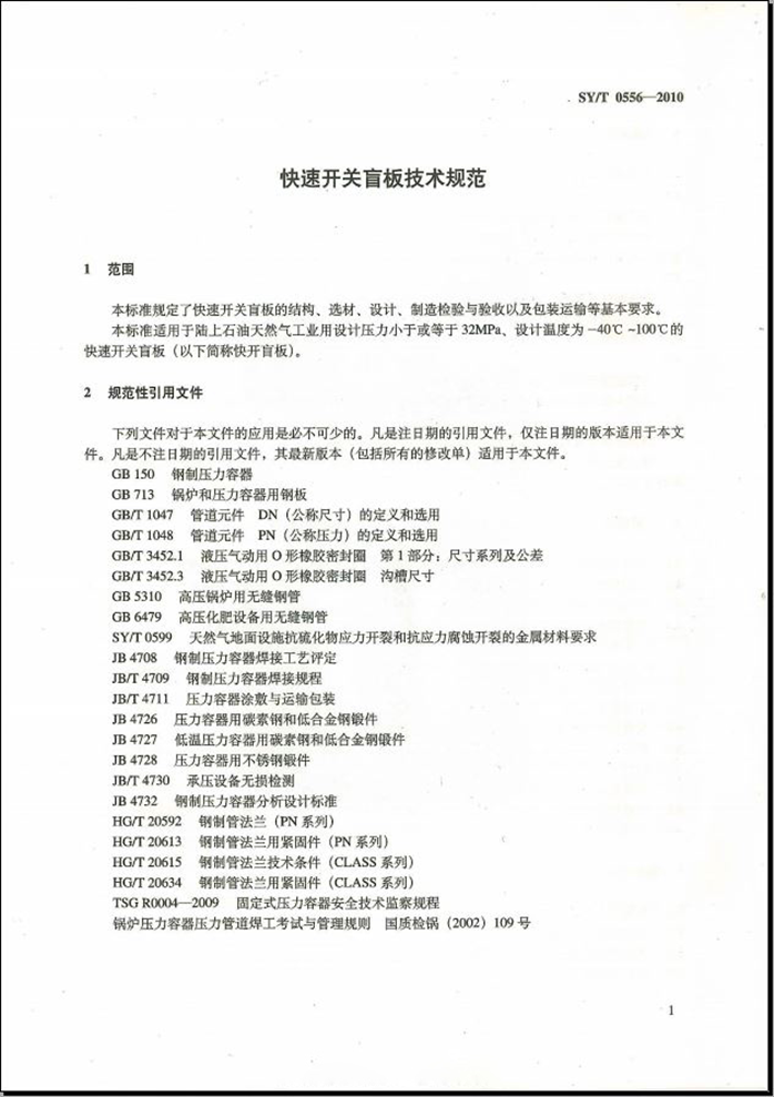 SYT 0556-2010 快速開關(guān)盲板技術(shù)規(guī)范