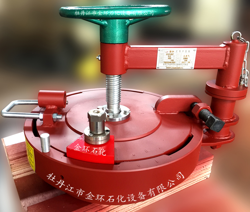 快開(kāi)盲板是用于壓力管道或壓力容器的圓形開(kāi)口上的一種機(jī)械裝置。一般由筒體法蘭、頭蓋、勾圈或卡箍、密封圈、安全聯(lián)鎖機(jī)構(gòu)、開(kāi)閉機(jī)構(gòu)、轉(zhuǎn)臂及短節(jié)(需要時(shí))等部件構(gòu)成。